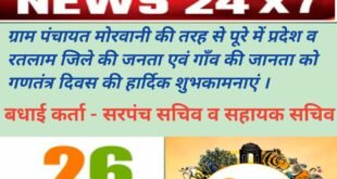 ग्राम पंचायत मोरवानी की तरह से पूरे देश व रतलाम जिले की जनता को गणतंत्र दिवस की हार्दिक शुभकामनाएं ।