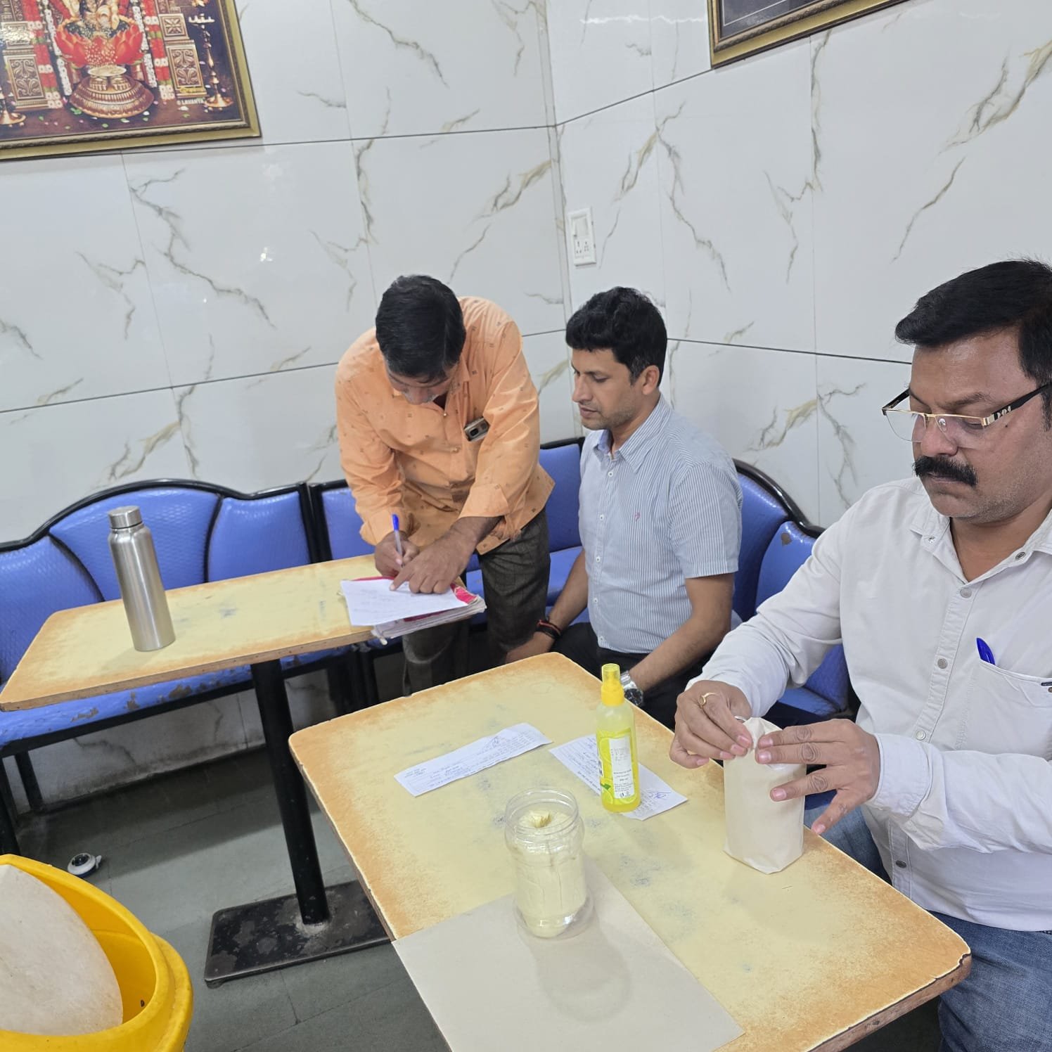 कलेक्टर मिशा सिंह के निर्देशन में आगामी त्यौहार को देखते हुए खाद्य सुरक्षा अधिकारी कमलेश जमरा द्वारा मिलावट के विरुद्ध लगातार कार्यवाही की जा रही है। आज आलोट में कार्रवाई करते हुए रेलवे ऑफिस के सामने स्थित जय माता दी किराना से नवकार बेसन,पीपली बाजार स्थित गुडलक एजेंसीज से पतंजलि घी और सुंदर हल्दी पाउडर, राज मार्केटिंग से एबिस रिफाइंड सोयाबीन तेल, राजेंद्र चौक स्थित कपिल नमकीन से मिठाई और सेव के नमूने लिए। लिए गए सभी नमूने राज्य खाद्य परीक्षण प्रयोगशाला भोपाल भेजे गए जहां से प्राप्त जांच रिपोर्ट के आधार पर खाद्य सुरक्षा एवं मानक अधिनियम 2006 के अंतर्गत नियमानुसार कार्यवाही की जाएगी। सभी खाद्य संस्थानो को गुणवत्तायुक्त खाद्य पदार्थों के संग्रहण एवं विक्रय करने के निर्देश दिए गए हैं ।