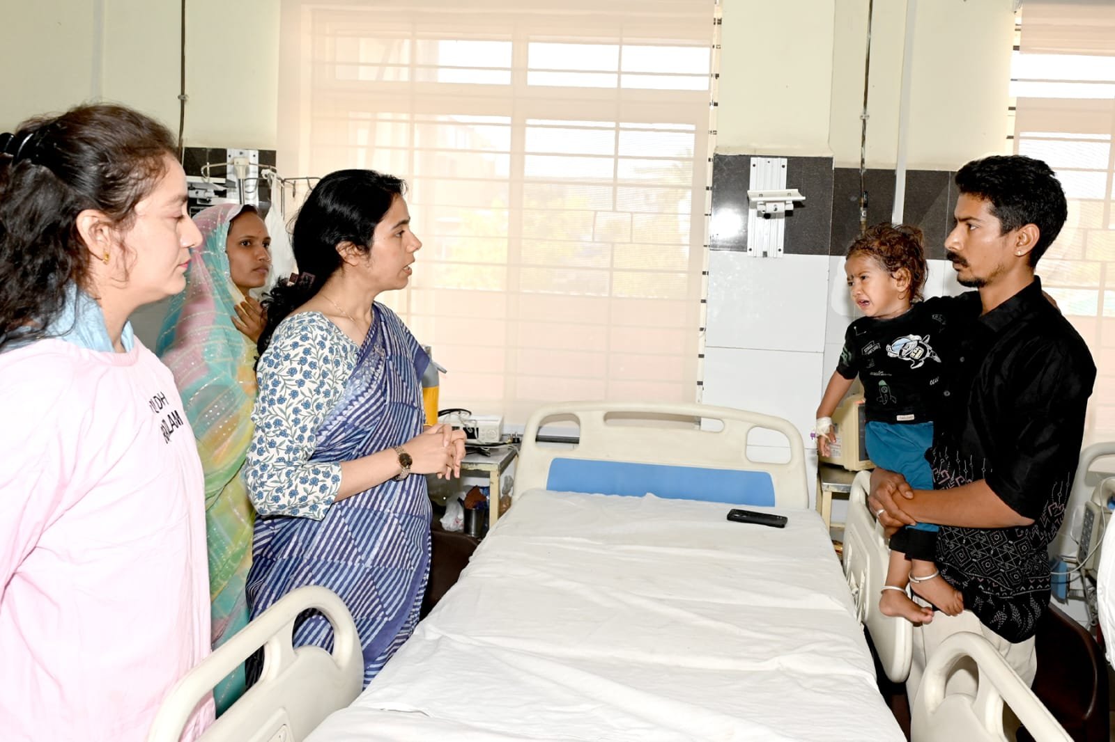 ग्राम धराड़ के भर्ती बच्चे की कुशलक्षेम पूछी उसके अभिभावकों से चर्चा की, चिकित्सकों ने बताया कि बच्चा पूरी तरह स्वस्थ है और अभी उसे डिस्चार्ज किया जा रहा है। कलेक्टर ने नवजात शिशु गहन चिकित्सा इकाई का निरीक्षण किया वहां भर्ती बच्चों को मिल रही सेवाओं के बारे में विस्तार से जानकारी ली। कलेक्टर ने निर्देशित किया कि प्रसव कराने वाली सभी माताओं के जन्म प्रमाण पत्र उनके डिस्चार्ज होने से पहले ही प्रदान कर दिए जाएं, एम सी एच अस्पताल की लिफ्ट के बारे में नस्ती के माध्यम से पूरी जानकारी प्रस्तुत करने को कहा। कलेक्टर ने निर्देशित किया कि पोस्ट ऑफिस में समन्वय स्थापित कर 5 वर्ष से कम आयु के बच्चों के आधार कार्ड बनाने की व्यवस्था एम सी एच में ही प्रारंभ की जाए। कलेक्टर ने मातृ एवं शिशु चिकित्सा इकाई के थैलेसीमिया वार्ड का निरीक्षण किया।