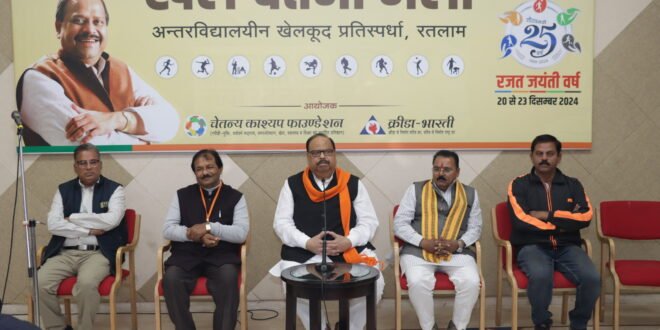 क्रीड़ा भारती एवं चेतन्य काश्यप फाउंडेशन द्वारा आयोजित खेल चेतना मेला इस वर्ष रजत जयंती मनाएगा। 25वां खेल चेतना मेला की तैयारियों के संबंध में फाउंडेशन अध्यक्ष एवं सूक्ष्म, लघु एवं मध्यम उद्यम मंत्री चेतन्य काश्यप ने स्कूल संचालकों एवं प्राचार्यों की बैठक ली। इसमें 20 से 23 दिसंबर तक आयोजित होने वाले खेल चेतना मेला में अधिक से अधिक बच्चों की सहभागिता सुनिश्चित करने का आव्हान किया। इस अवसर पर जिला भाजपा प्रभारी प्रदीप पांडे्य, जिला अध्यक्ष प्रदीप उपाध्याय, आयोजन समिति सचिव मुकेश जैन, क्रीड़ा भारती सचिव अनुज शर्मा मंचासीन रहे। फाउंडेशन अध्यक्ष एवं मंत्री श्री काश्यप ने कहा कि खेल चेतना मेल को जब से शुरू किया है, तब से उसका मुख्य उद्देश्य अनुशासन और खेल भावना का विकास करने का रहा है। अनुशासन तो क्लास में भी सीखा जा सकता हैं लेकिन खेल भावना का विकास खेल ही सिखाता है। यह भावना निरंतर प्रयास करने से विकसित होती है और बच्चों के जीवन में संस्कार के रूप में रोपित हो जाती है। हर खेल का अंत हार से या जीत से होता है। हार से ही बच्चा अगली बार जीतने के लिए सीख लेता है। अवसाद से मुक्ति दिलाना है तो खेलों में रुचि रखना बहुत आवश्यक है। इस संस्कार को डालने का यदि कोई पहला स्थान है तो वह स्कूल है।