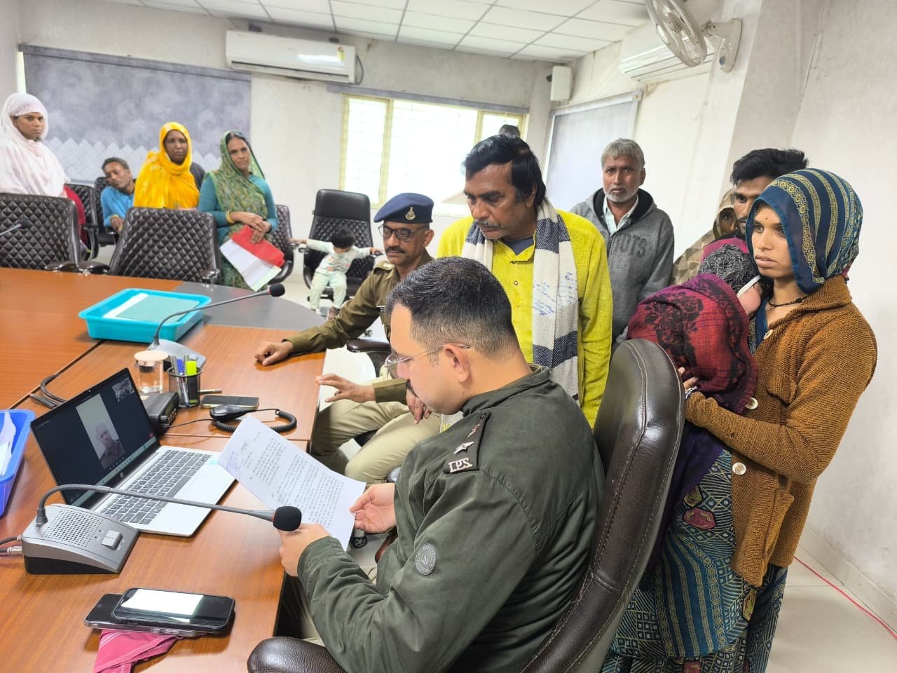पुलिस अधीक्षक कार्यालय में पुलिस अधीक्षक अमित कुमार के निर्देशन में जनसुनवाई का आयोजन किया गया। जनसुनवाई में विभिन्न थाना क्षेत्रों से आए 28 आवेदको की शिकायतो को जनसुनवाई के माध्यम से सुना। पुलिस अधीक्षक अमित कुमार एवं अतिरिक्त पुलिस अधीक्षक रतलाम ग्रामीण विवेक कुमार लाल द्वारा जनसुनवाई में प्राप्त विभिन्न शिकायतो को सुनकर थाना प्रभारीयो से प्रकरणों के बारे में एवं की गई कार्यवाही की जानकारी ली,