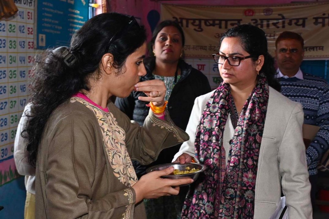 कलेक्टर ने आंगनबाड़ी केन्द्र आक्याकला मे भोजन की गुणवत्ता देखी एवं बच्चों से फीडबैक लिया। आंगनबाड़ी केंद्र आक्याकला का निरीक्षण किया। निरीक्षण के दौरान किचनशेड में बन रहे मध्याह्न भोजन की सब्जी, दाल रोटी खाकर गुणवत्ता देखी। रसोईयनो से चर्चा कर राशन एवं मानदेय के बारे में चर्चा की। रसोईयनो का चार माह का लंबित मानदेय भुगतान करवाने के निर्देश दिए । बच्चों को दिए जा रहे टेक होम राशन एवं पोषण आहार की स्थिति जांची। बच्चों को नाश्ते मे दी गई खिचड़ी को टेस्ट कर गुणवत्ता जाची।आगनवाडी केन्द्र आक्याकला के गेट के सामने बच्चों की सुरक्षा के लिए नाली को कवर करने के लिए निर्देशित किया। केन्द्र पर बच्चों की उपस्थिति कम होने पर नाराजगी जाहिर करते हुए आंगनवाड़ी मे सभी बच्चों की उपस्थिति सुनिश्चित करने के निर्देश आंगनवाड़ी कार्यकर्ता को दिए। सभी गर्भवती महिलाओं को दर्ज कर टीकाकरण, पोषण आहार एवं अन्य सभी सेवाए उपलब्ध करवाने के निर्देश दिए। आगनवाडी एवं स्कूल परिसर में बने वाशबेसिन की मरम्मत का काम एवं परिसर में पेयजल की व्यवस्था करवाने के निर्देश पी एच ई को दिए।