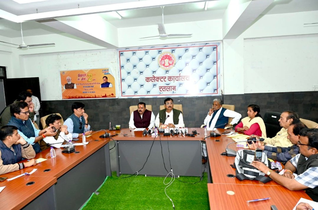 प्रेस कॉन्फ्रेंस में जिले की उपलब्धियों की जानकारी देते हुए प्रभारी मंत्री डॉ. शाह ने कहा कि विगत दो वर्षों में रतलाम जिले में धार्मिक, पर्यटन, औद्योगिक, कृषि, स्वास्थ्य, शिक्षा, नगरीय एवं ग्रामीण विकास के क्षेत्रों में उल्लेखनीय उपलब्धियां हासिल की गई हैं। रतलाम जिले में दिल्ली मुम्बई 8 लाईन एक्सप्रेस वे का कार्य पूर्ण होकर लोकार्पित किया जा चुका है। 48 करोड़ की लागत का 20.57 किमी का रिंगरोड़ (बंजली से मांगरोल फंटा) , 21.25 करोड़ की लागत का 16.275 किमी गुणावद-बरबोदना-रघुनाथ गढ़ केरवास-उपलाई-भुतेड़ा मार्ग का निर्माण किया गया। ए.बी.डी. योजना से 89 करोड़ की लागत से 64.53 किमी सड़क का निर्माण किया गया है। नमकीन क्लस्टर में 101 भुखण्ड आवंटित किए गए है, जिसमें 40 करोड़ की लागत से 32 ईकाईया प्रारंभ हो गई है, विद्युत विभाग द्वारा 111 करोड़ के विद्युत विस्तारीकरण एवं क्षमता वृद्धि के 300 ग्रामों मे कार्य करवाऐ गए। जिले में 6 सांदीपनि विद्यालयों में से 2 का निर्माण पूर्ण हो चुका है, 4 प्रगतिरत है, सांदीपनि विनोबा विद्यालय रतलाम टी 4 एजुकेशन संस्था लंदन द्वारा आयोजित वर्ल्ड बेस्ट प्रेक्टिसेस अवार्ड की इनोवेशन केटेगरी मे प्रथम स्थान पर है, इसके लिए जिले को 10000 यूएस डालर का पुरूस्कार प्राप्त हुआ है। वर्ष 2024-25 में हाईस्कूल में 78.4 प्रतिशत, हायर सेकेण्डरी में 79.62 प्रतिशत परीक्षा परिणाम प्राप्त हुआ है। इंस्पायर अवार्ड योजना में रतलाम जिला राज्य स्तर पर दूसरे स्थान पर रहा। राजस्व महाअभियान के तीनों चरणों में कुल 4,08,445/- प्रकरणों का निराकरण किया गया। एमपीआरडीसी द्वारा 20 करोड़ की लागत के 9 सड़क का निर्माण किया गया। लोकनिर्माण विभाग द्वारा 232.55 करोड़ की लागत से 207.76 किमी सड़कों का निर्माण किया गया। एमपीआरडीसी द्वारा 1803.41 लाख लागत से 208.80 किमी की सड़क एवं ब्रिज का निर्माण किया गया। लोकनिर्माण विभाग (सेतु) द्वारा 94.92 करोड़ की लागत से 7 आरओबी /पुलों का निर्माण एवं लोकनिर्माण विभाग (भवन) द्वारा 146.41 करोड़ की लागत से कुल 30 नवीन भवनों का निर्माण किया गया। जलसंसाधन विभाग द्वारा 1696 लाख की लागत से बेराज/तालाबों का निर्माण किया गया। मुख्यमंत्री लाडली बहना योजना से 503012 लाडली बहनाओं को 630.29 करोड़ प्रदान किए गए। प्रधानमंत्री मातृ वंदना योजना से 17630 हितग्राहियों को 9.19 करोड़ प्रदान किए गए। जलजीवन मिशन अंतर्गत 95 प्रतिशत लक्ष्य प्राप्त कर लिया गया है। खाद्य विभाग द्वारा कुल 244396 परिवारों के 973441 सदस्यों को प्रतिमाह लगभग 5338 मिट्रीक टन निःशुल्क खाद्यान वितरण किया गया। महिला सुरक्षा सशक्तिकरण हेतु 2 वनस्टॉप सेंटर रतलाम और जावरा में स्थापित किए गए है। महिला सशक्तिकरण के लिए 1152 स्वयंसहायता समुह का गठन कर 11526 महिलाओं को 7.92 करोड़ रूपये से लाभांवित कर स्वरोजगार के लिए 