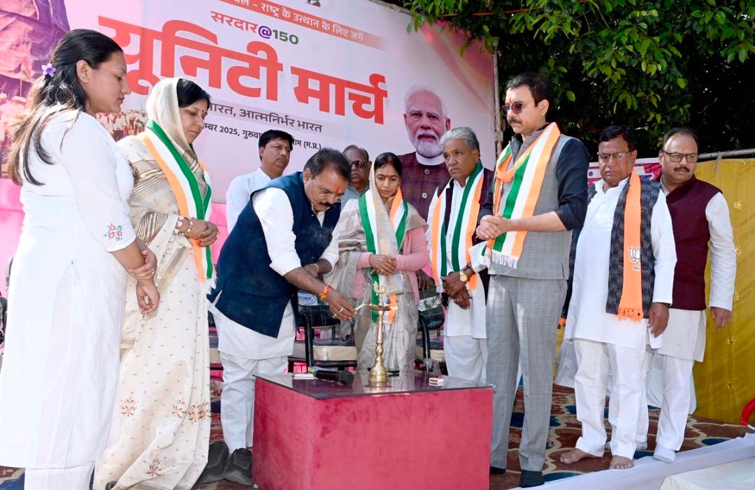 सरदार वल्लभभाई पटेल की 150वीं जयंती पर देश भर में यूनिटी मार्च एक भारत-आत्म निर्भर भारत की थीम पर पदयात्राए आयोजित की जा रही है। उसी तारतम्य में आज 13 नवबंर को रतलाम मे सांसद अनिता नागर सिंह चौहान के नेतृत्व में पदयात्रा का आयोजन किया गया। यात्रा मार्ग पर आमजन द्वारा पुष्प वर्षा कर भव्य स्वागत किया गया।