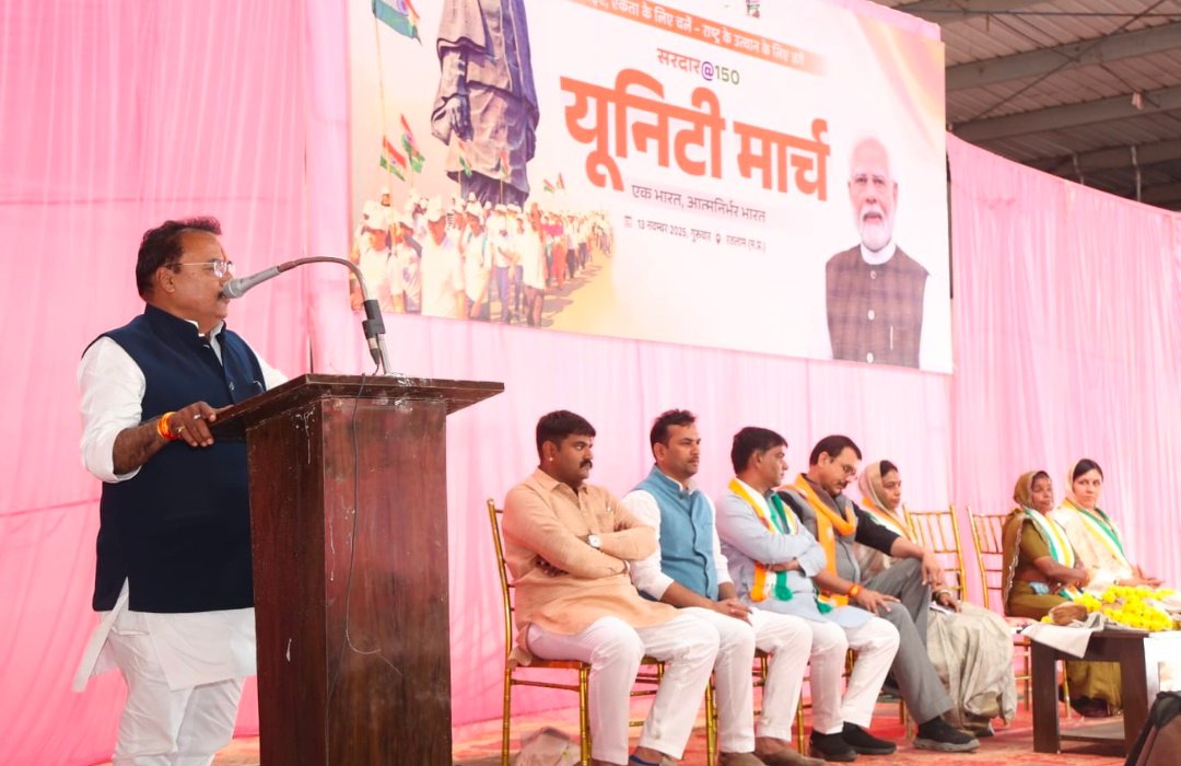 पदयात्रा के दौरान आयोजित कार्यक्रम को संबोधित करते हुए सांसद अनिता नागर सिंह चौहान ने कहा कि सरदार वल्लभ भाई पटेल के व्यक्तित्व से प्रभावित एवं प्रेरित होकर प्रधानमंत्री नरेन्द्र मोदी ने सशक्त एवं आत्मनिर्भर भारत बनाने का संकल्प लिया है। इस यात्रा का उद्देश्य आत्मनिर्भर भारत बनाना है। महिलाओं को सशक्त करने के लिए कई योजनाएं संचालित है। युवाओं के विकास एवं कौशल उन्नयन के क्षेत्र में देश प्रधानमंत्री के नेतृत्व में अग्रसर है। शुभांरभ अवसर पर विधायक डामोर ने सभी को एक साथ रहने एवं देश के विकास के लिए एकता का परिचय देने की बात कही।