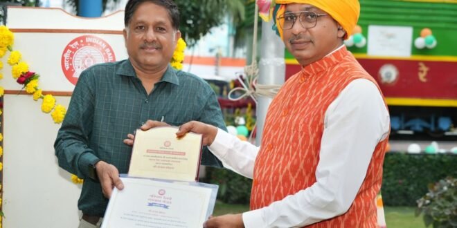 पश्‍चिम रेलवे रतलाम मंडल पर 78वां स्‍वतंत्रता दिवस उत्‍साह, सम्‍मान, निष्‍ठा एवं हर्षोल्‍लास के साथ मनाया गया। स्‍वतंत्रता दिवस हर भारतीयों के लिए एक विशेष एवम महत्वपूर्ण त्‍यौहार है। 78वें स्‍वतंत्रता दिवस के अवसर पर मंडल रेल प्रबंधक कार्यालय रतलाम के प्रांगण मुख्य कार्यक्रम का आयोजन किया गया जहां मंडल रेल प्रबंधक रतलाम श्री रजनीश कुमार द्वारा ध्‍वजारोहण किया गया। ध्‍वजारोहण के उपरांत मंडल सुरक्षा आयुक्‍त श्री मिथुन सोनी की अगुआई में रेलवे सुरक्षा बल के परेड का निरीक्षण कर परेड की सलामी ली। कार्यक्रम के दौरान मंडल रेल प्रबंधक रतलाम द्वारा महाप्रबंधक पश्‍चिम रेलवे के स्‍वतंत्रता दिवस संदेश का वाचन एवं रतलाम मंडल की उपलब्धियों को बताया गया। 78वें स्वतंत्रता दिवस के अवसर पर मंडल रेल प्रबंधक रजनीश कुमार द्वारा विभिन्‍न विभागों में उत्‍कृष्‍ट कार्य करने वाले 23 कर्मचारियों को सम्‍मानित किया गया।  कार्यक्रम के दौरान रतलाम मंडल की सांस्‍कृति टीम द्वारा देश‍भक्ति गीत की प्रस्‍तुती दी गई। स्‍वतंत्रता दिवस के अवसर पर विशेष अतिथि के रूप में पश्‍चिम रेलवे महिला कल्‍याण संगठन,रतलाम मंडल की अध्‍यक्षा सपना अग्रवाल के अतिरिक्त अपर मंडल रेल प्रबंधक अशफाक अहमद एवं समस्त शाखाधिकारी, अन्य अधिकारी,बड़ी संख्यामें पर्यवेक्षक, कर्मचारी तथा वेस्टर्न रेलवे मज़दूर संघ,वेस्टर्न रेलवे एम्प्लाइज यूनियन,एससीएसटी तथाओबीसी एसोसिएशन के पदाधिकारी उपस्थित रहे। पश्चिम रेलवे महिला कल्‍याण संगठन द्वारा संचालित अरूणोदय बाल मंदिर में बच्‍चों द्वारा मंडल रेल प्रबंधक एवं पश्चिम रेलवे महिला कल्‍याण संगठन की अध्‍यक्षा का स्‍वागत किया गया। सभी अतिथियों की उपस्थिति में सपना अग्रवाल द्वारा अरूणोदय बाल मंदिर परिसर में ध्‍वजारोहण किया गया तथा बच्‍चों के रंगारंग कार्यक्रम के बाद उन्‍हे उपहार बांटे गये। पश्चिम रेलवे महिला कल्‍याण संगठन की अध्‍यक्षा सपना अग्रवाल द्वारा रेलवे चिकित्‍सालय एवं मंडल कार्यालय में सफाई कर्मियों को उपहार प्रदान कर सम्‍म‍ानित किया गया। 78वें स्वतंत्रता दिवस के अवसर पर मंडल कार्यालय में आयोजित मुख्‍य कार्यक्रम के अतिरिक्‍त रतलाम मंडल के सभी स्‍टेशनों, कार्यालयों,कार्यशालाओं, मरम्‍मत इकाइयों, मंडल रेलवे चिकित्‍सालय सहित चिकित्‍सा यूनिटों में भी उत्‍साह के साथ ध्‍वजारोहणकिया  गया। खेमराज मीना जनसंपर्क अधिकारी,रतलाम मंडल !