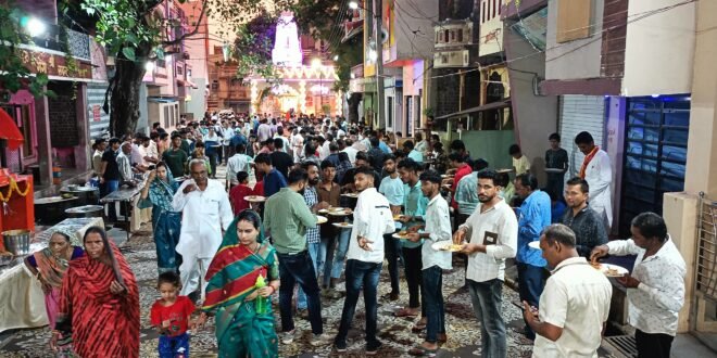 नगर के महालक्ष्मी गली स्थित शीतला माता मंदिर पर महा आरती के पश्चात् विशाल महाप्रसादी का कार्यक्रम संपन्न हुआ