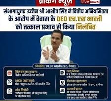 उज्जैन, संभागायुक्त आशीष सिंह ने देवास जिले के जिला शिक्षा अधिकारी एच.एस. भारती को वित्तीय अनियमितताओं के अंतर्गत मध्यप्रदेश सिविल …