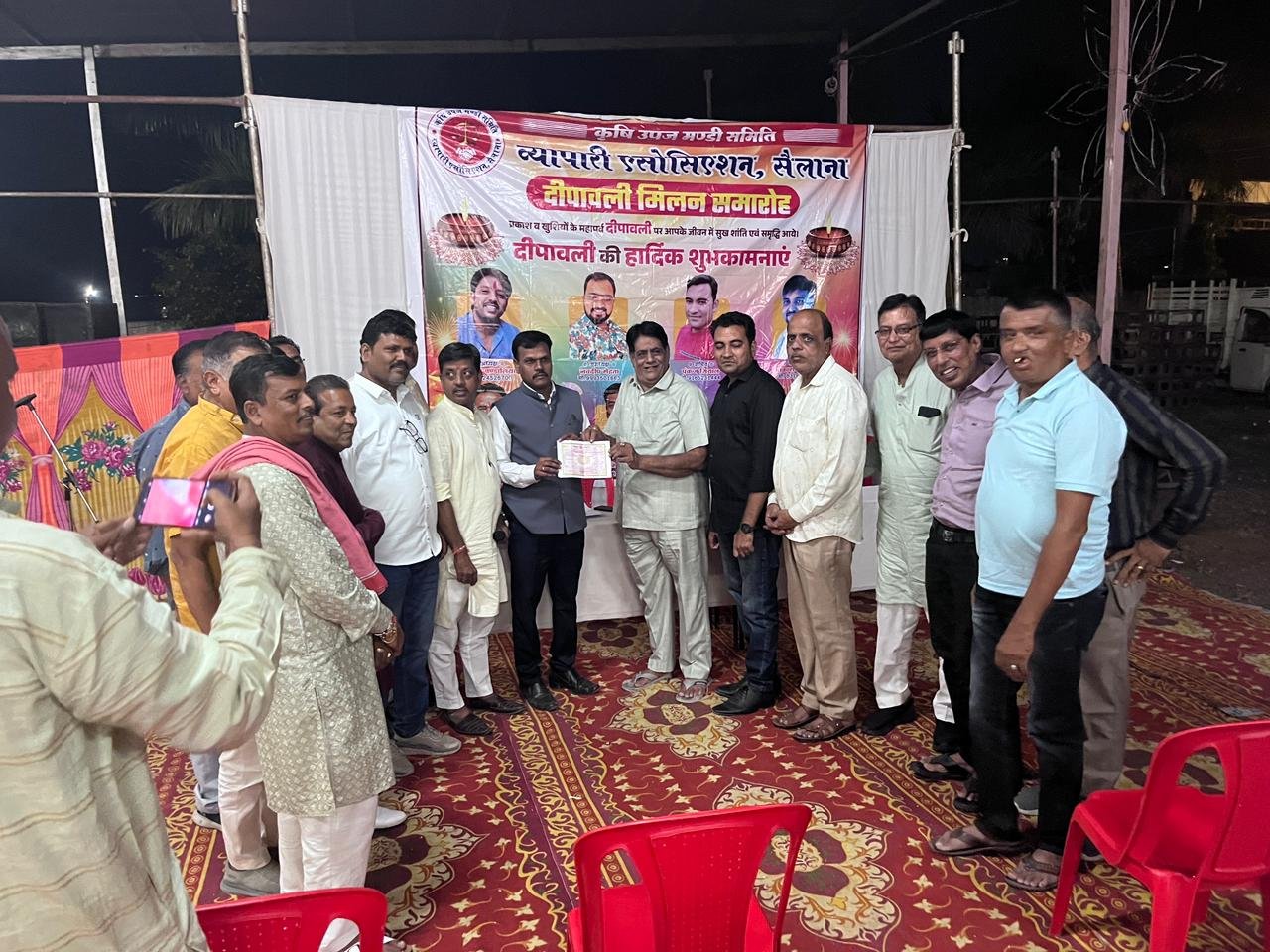 मंडी व्यापारी संघ का दीपावली मिलन समारोह संपन्न ।कार्तिक गार्डन में सैलाना कृषि मंडी के सकल कृषि मंडी व्यापारी संघ का दिवाली मिलन समारोह आयोजित किया गया । समारोह में संघ के अध्यक्ष इंद्रेश चंडालिया ने स्वागत भाषण में सभी को दीपोत्सव की शुभकामनाएं देते हुए बीते वर्ष में किए गए कार्यों की जानकारी के साथ संघ द्वारा आगामी कार्यों की रूपरेखा प्रस्तुत की । संघ के सचिव पंकज सियार ने वर्षभर का लेखा जोखा प्रस्तुत किया।