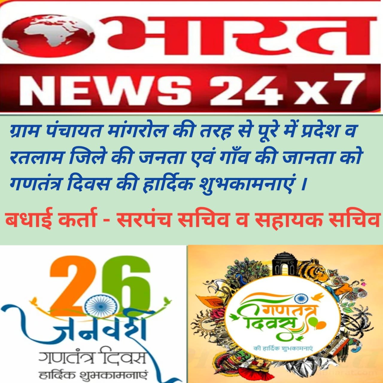 रतलाम ग्राम पंचायत मांगरोल की तरह से पूरे देश व रतलाम जिले की जनता को गणतंत्र दिवस की हार्दिक शुभकामनाएं । बधाई कर्ता - सरपंच सचिव व सहायक सचिव