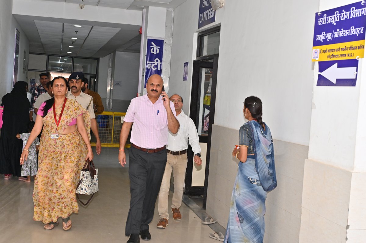 सरकारी अस्पताल में आने वाले मरीजों एवं परिजनों के लिए गर्मी को देखते हुए ठण्डा पेयजल, कूलर, पंखा, साफ-सफाई की व्यवस्थाओं का जायजा लेने के लिए कलेक्टर श्री राजेश बाथम ने सभी राजस्व अधिकारियो को अपने अपने क्षेत्र में संचालित स्वास्थ्य केन्द्रों का एक साथ निरीक्षण करने के निर्देश दिए। निर्देश के पालन में आज स्वय कलेक्टर श्री बाथम सहित एसडीएम एवं तहसीलदारों ने जिले के सभी सरकारी अस्पतालों का आकस्मिक निरीक्षण किया। कलेक्टर ने कालेज के डिपार्टमेंट, लायब्रेरी, स्पीच हाल, एसएनसीयू आदि का निरीक्षण करते हुए जानकारी प्राप्त की। इस दौरान कालेज डीन डा. अनीता मूथा, डा. अंकित जैन तथा एसडीएम श्री अनिल भाना सहित विभागीय अधिकारी तथा कर्मचारी उपस्थित थे।