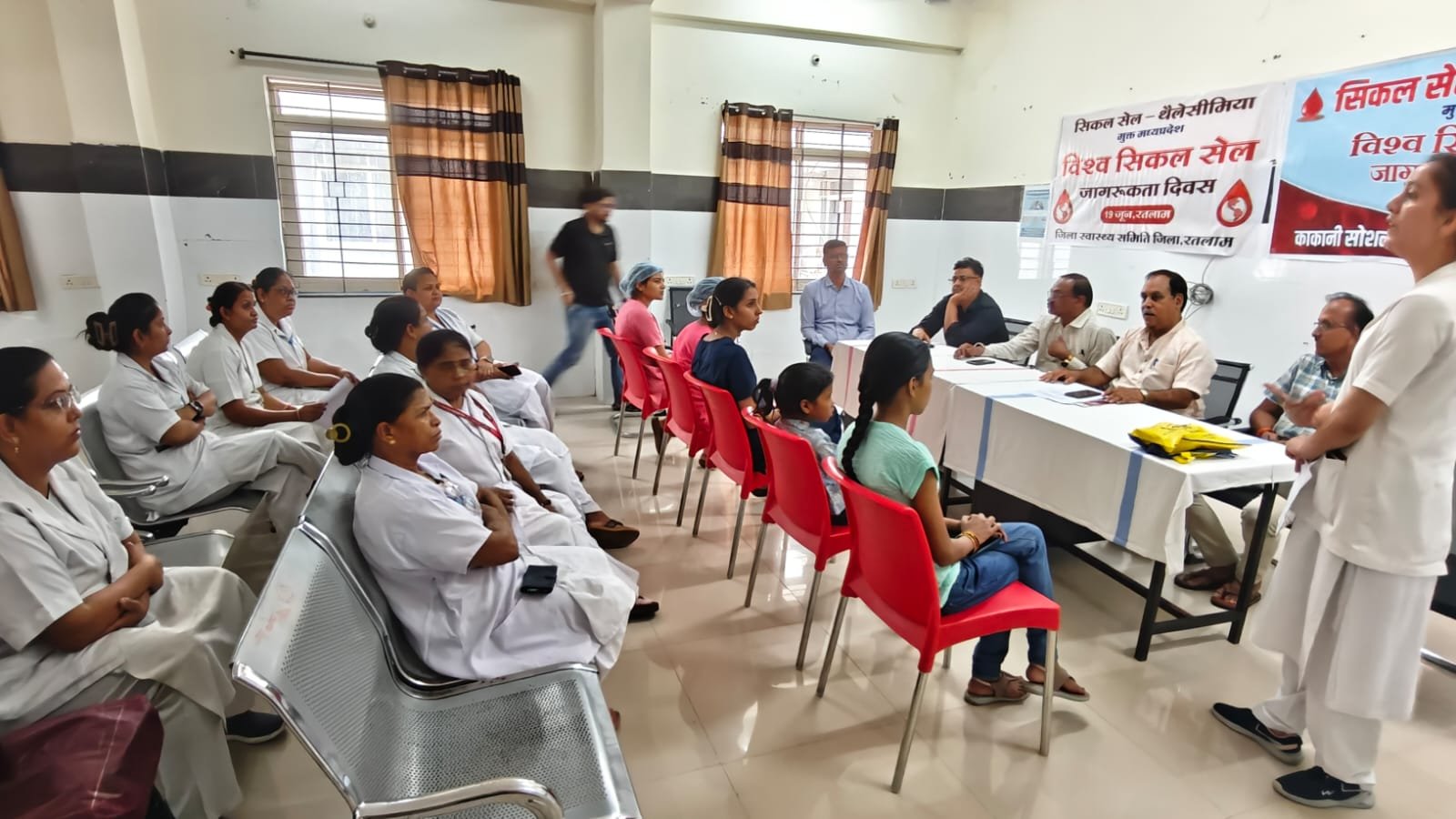उक्त वार्ड में प्रभारी सिस्टर अलका चौधरी ,अर्चना जोसेफ, इंचार्ज सिस्टर रानी नेल्सन, रेखा वसुनिया ,सफाई कर्मी बहन रीना के कार्य की सभी ने सराहना की कार्यक्रम में समाजसेवी दीपक डोसी, दिनेश बरमेचा परिवार, स्वर्गीय मोहनलाल काबरा की स्मृति में संजीव काबरा मुंबई,के आर्थिक सहयोग से समय-समय पर वार्ड में आवश्यक सामग्री आदि की व्यवस्था सतत की जा रही है | कार्यक्रम मैं डॉक्टर प्रतीक आर्य, डॉक्टर सोनू कुशवाह, डॉ हरिओम गुर्जर, डॉ रोहित पाटीदार, डॉ लेखराज पाटीदार, डॉ देवेंद्र शाह, डॉ कुशल पाल सिंह वर्मा, डॉ सुनीता गामड़, सुश्री वर्षा पंवार , मेट्रन शोभा सैनी ,उर्मिला मसीह, रेखा वसुनिया आदि ने चर्चा में हिस्सा लिया| कार्यक्रम का संचालन सुश्री भारती गहलोत ने एवं आभार चेतन पांडे ने किया ग्रामीण क्षेत्रों में भी सिकल सेल एनीमिया के संबंध में गतिविधिया की गई सीएमएचओ डॉक्टर संध्या बेलसरे ने बताया कि रतलाम जिले के आयुष्मान आरोग्य मंदिरों और शासकीय स्वास्थ्य केंद्रों पर सिकल सेल एनीमिया से बचाव संबंधी जागरूकता गतिविधियां आयोजित की गई ।