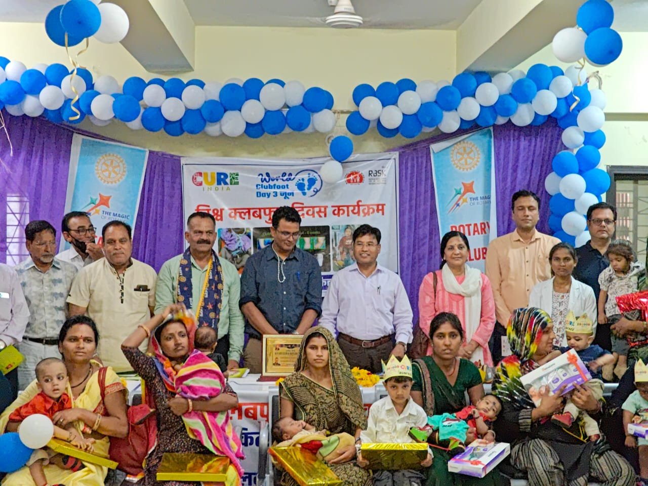 सिविल सर्जन डॉ एम एस सागर ने बताया कि जिला चिकित्सालय रतलाम एवं रोटरी क्लब रतलाम डायमंड के संयुक्त तत्वाधान में विश्व क्लब फूट (बच्चों में जन्मजात विकृति के रूप में टेढ़े-मेढ़े पैर होना) दिवस मनाया गया। राष्ट्रीय बाल स्वास्थ्य कार्यक्रम के अंतर्गत विभिन्न ब्लॉक के ग्रामीण क्षेत्रों में चिकित्सकों द्वारा जन्मजात विकृति के बच्चों की खोज की जाती है और इसके अंतर्गत क्लब फुट से पीड़ित बच्चों को उनकी विकृति से छुटकारा दिलाने के लिए प्रति गुरुवार जिला चिकित्सालय में क्लब फुट क्लीनिक का संचालन किया जाता है। जिला चिकित्सालय में पदस्थ अस्थि रोग विशेषज्ञ डॉक्टर भरत निनामा इस कार्य को सफलता पूर्ण कर रहे हैं। जिला चिकित्सालय रतलाम में आयोजित समारोह में विशिष्ट अतिथि जिला स्वास्थ्य अधिकारी डॉ वर्षा कुरील, सिविल सर्जन डॉ एम एस सागर, रोगी कल्याण समिति के सदस्य श्री गोविंद काकानी एवं रोटरी क्लब रतलाम डायमंड के अध्यक्ष अश्विनी शर्मा रहे।