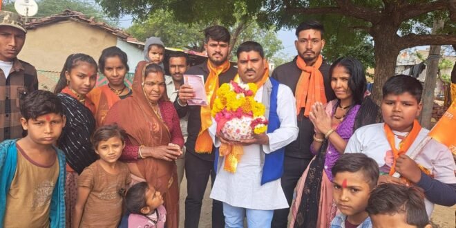 भेसा खेड़ा अयोध्या में राम मंदिर प्राण प्रतिष्ठा की रूपरेखा तय हो गई है 22 जनवरी को होने वाले आयोजन के पूर्व अक्षत कलश के माध्यम से घर-घर निमंत्रण दिया जा रहा है अयोध्या से आए अक्षत कलश को राम भक्त विधि विधान से पूजा अर्चना कर रहे हैं मोहल्ले गांव में पहुंच रहे हैं अक्षत कलश को रैली के रूप में आज ग्राम भैसा खेड़ा में बालाजी मंदिर प्रांगण से पूरा गांव मोहल्ले में पीले चावल देते हुए अयोध्या में बनने जा रहे राम मंदिर प्राण प्रतिष्ठा के लिए निमंत्रण दिया गया विश्व हिंदू परिषद कार्यकर्ता राजेंद्र दायमा ने बताया कि गांव में बड़े बुजुर्ग व युवाओ व महिलाओं ने कलश का स्वागत वंदन किया विश्व हिंदू परिषद कार्यकर्ता निलेश कुमार दायमा, अनिल कछावा विकास गोड अर्जुन दायमा लोकेश दायमा शैतान गरासिया अंकित गरासिया आशीष दायमा अनिल दायमा जितेंद्र राठौड ईश्वर चंदेल अजय चंदेल सहित समस्त कार्यकर्ता व ग्रामीण जन मौजूद रहे