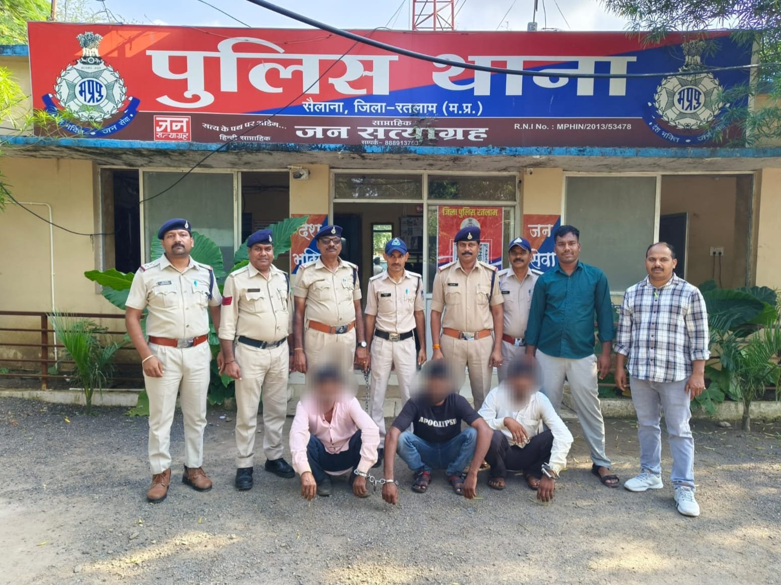 पुलिस करवाई का विवरण – पुलिस अधीक्षक अमित कुमार द्वारा जिला रतलाम के अंतर्गत विभिन्न थाना क्षेत्र में मवेशियों की चोरी की घटनाओं पर गंभीरता जताई गई एवं इन चोरियों पर अंकुश लगाने हेतु निर्देशित किया गया । श्रीमान पुलिस अधीक्षक महोदय श्री अमित कुमार के निर्देशन में अतिरिक्त पुलिस अधीक्षक राकेश खाखा एवं एसडीओपी महोदय सैलाना सुश्री नीलम बघेल के मार्गदर्शन में थाना प्रभारी सैलाना द्वारा गठित टीम द्वारा प्रकरण के अनुसंधान के दौरान पूर्व के अपराधिक रिकॉर्ड, मुखबिर सूचना एवं सीसीटीवी फुटेज के आधार पर चोरी में प्रयुक्त हुई पिकअप की तलाश करते हुए मुखबिर द्वारा दी गई सूचना के आधार पर वाहन चेकिंग के दौरान एक पिकअप को चेक करने पर दो भैंस व दो भैंस के बछड़े भरे हुए थे । इसके बाद चोरी की शंका होने पर ग्राम बोडिना में हुई चोरी के फरियादी को तलब कर दिखाने के बाद फरियादी द्वारा अपनी भैंसों को व दोनों भैंस के बछड़ों को पहचान लिया गया, इसके उपरांत पिकअप में ड्राइवर व ड्राइवर के साथ बैठे दोनों व्यक्तियों के संदिग्ध होने से उनसे पूछताछ करने पर भैंस के संबंध में कोई ठोस जानकारी नहीं होने से पूछताछ करने पर उनके द्वारा ग्राम बोदीना में अपने अन्य साथियों के साथ उक्त भैंसे चोरी करने की बात बताई।