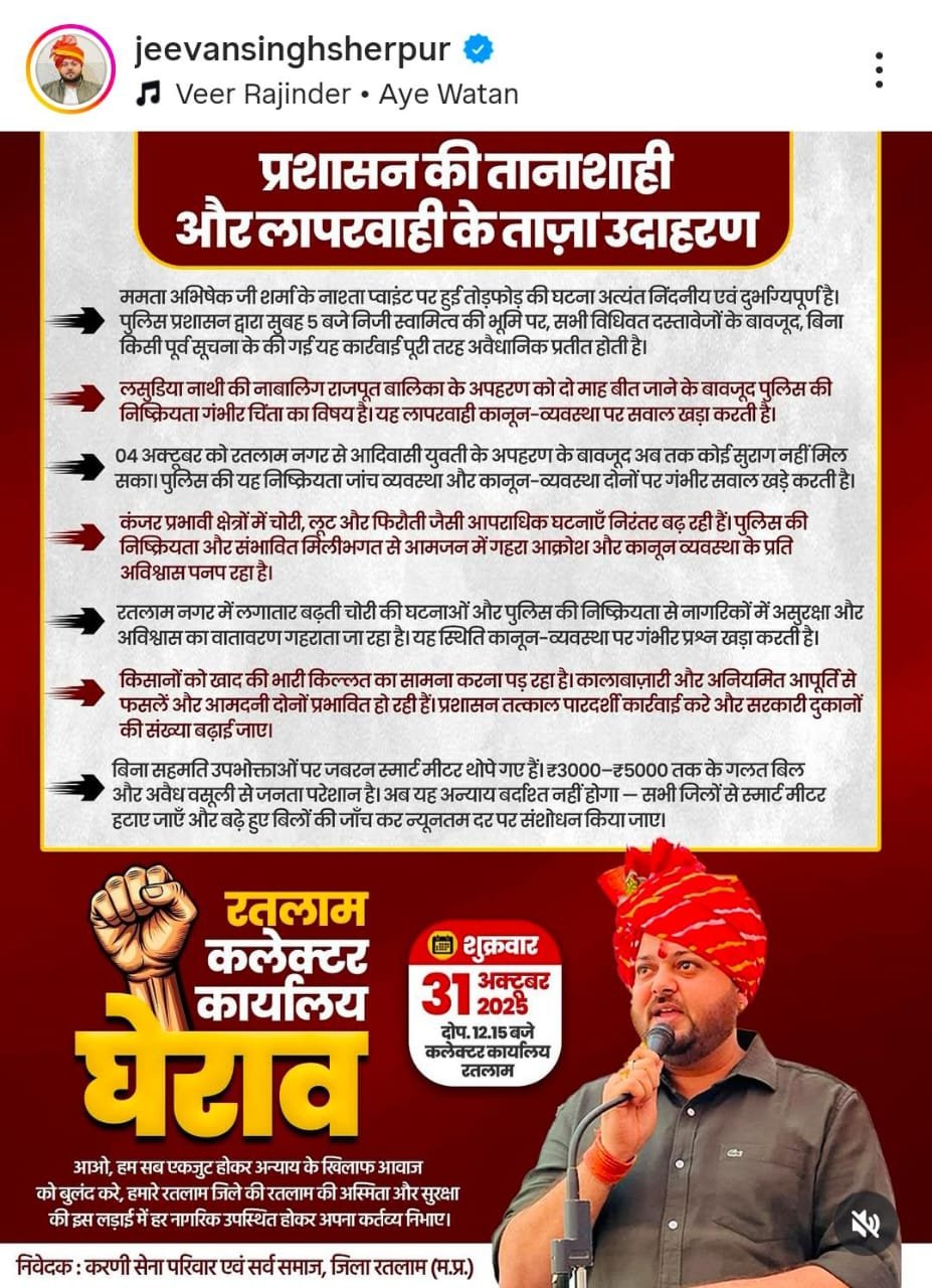 आओ, हम सब एकजुट होकर अन्याय के खिलाफ आवाज को बुलंद करे, हमारे रतलाम जिले की रतलाम की अस्मिता और सुरक्षा की इस लड़ाई में हर नागरिक उपस्थित होकर अपना कर्तव्य निभाए।