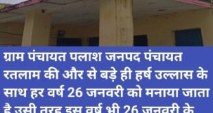 रतलाम 26/Jan/2025 ग्राम पंचायत पलाश जनपद पंचायत रतलाम की और स बड़े ही हर्ष उल्लास के साथ हर वर्ष 26 …