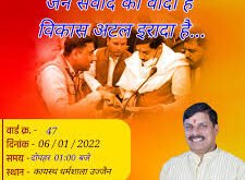 Read More »जिला स्तरीय जन संवाद कार्यक्रम का आयोजन 6 जनवरी को-समस्याओं के निराकरण विकास कार्यों की मॉनिटरिंग के लिए नगर पालिकाओं नगर निगम की नियमित रूपसे बैठके आयोजित की जाएगी-आयुष्मान भारत योजना के अंतर्गत हितग्राहियों के लिए मानक प्रक्रिया एवं आवश्यक निर्देश